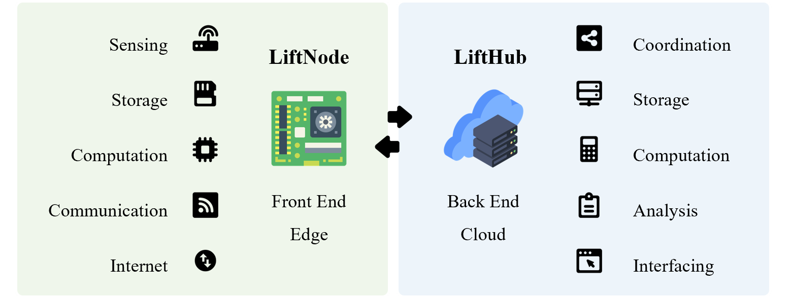 Acts as the server-side to interact with LiftNode, providing data storage and analysis functions.